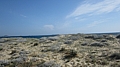 Toen een stukje verder gereden en daar de auto bij het strand geparkeerd. We konden over een steigerpad lopen richting de punt. Hier stond een kerkje een stenen haai en hier lag de cache “Agia Anna cache”. Het was even lastig om hem te vinden omdat je bijna uit je hempje waaide.