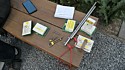 We zijn om negen uur vertrokken naar de eerste cache Groen dakje. Hier zijn we anderhalf uur bezig geweest om 7 deurtjes te openen, gelukkig stond er een bankje voor de cache. De eigenaar van de cache bood ons ook nog koffie en thee aan. Gelukkig heeft hij ons her en der geholpen, anders was hij niet opengegaan.