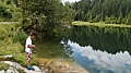 Daarna zijn we door gereden naar de Urisee. Daar waren we om tien uur. We hebben een klein stukje gelopen om aan de oever van het meer te komen.
