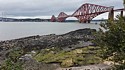 Toen zijn we over een brug gereden en zagen de spoorbrug Forth Bridge. We hebben vlakbij de spoorbrug geparkeerd om de cache "See Three Bridges" te zoeken, helaas konden we hem niet vinden.