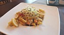 Nadat we onze overnachtingsspullen uit de auto hebben gehaald zijn we gaan eten.