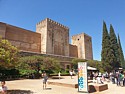 daarna hebben we de cache Calle de las TeterĂas gezocht. Onderweg ernaartoe hebben de heren een mini mini bakje koffie gedronken. We kwamen door een straatje met allemaal souvenirwinkeltje en daar heb ik nieuw rugtasje gekocht. Na de cache zijn we weer naar de bushalte gelopen en hebben een half uurtje gewacht op bus 34, die ons naar boven naar het Alhambra bracht. We hadden het Nastid paleis om 13:30 uur geboekt, dus we zijn rustig die kant opgelopen. Vlak voor het paleis hebben we onze lunch opgegeten. We waren te vroeg bij de wachtrij, om de tijd te vullen hebben we de cache Alhambra Granada Virtual Reward 2.0 gelogd. We moesten een foto van ons maken in het Alhambra.