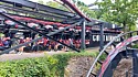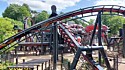 Daarna wilde Wouter in Oblivion, alleen deze was dicht. Hij heeft wel even gepast of dat wel gaat passen, gelukkig. Het is een redelijk groot park dus we moesten even lopen om bij Rita te komen, alleen is Wouter langer dan 1,95 m. Dus dat werd hem ook niet. Gelukkig paste hij wel in Th13teen, alleen kon ik daar niks van zien. Daarna wilde we naar de Galactica, maar we hebben een afslag gemist en stonden opeens voor de Wicker Man, dit is een houten achtbaan en daar hoefde Wouter niet in.