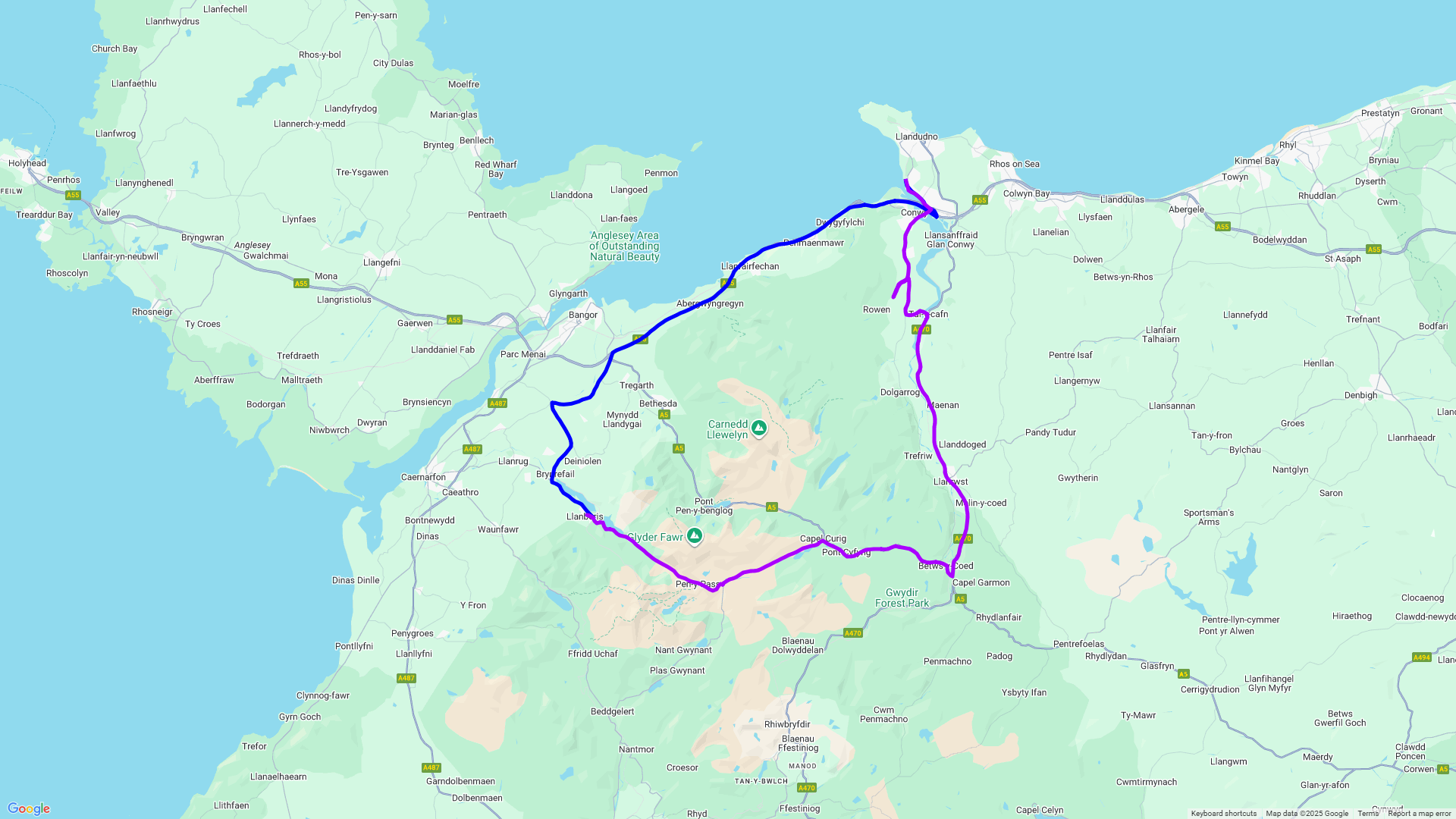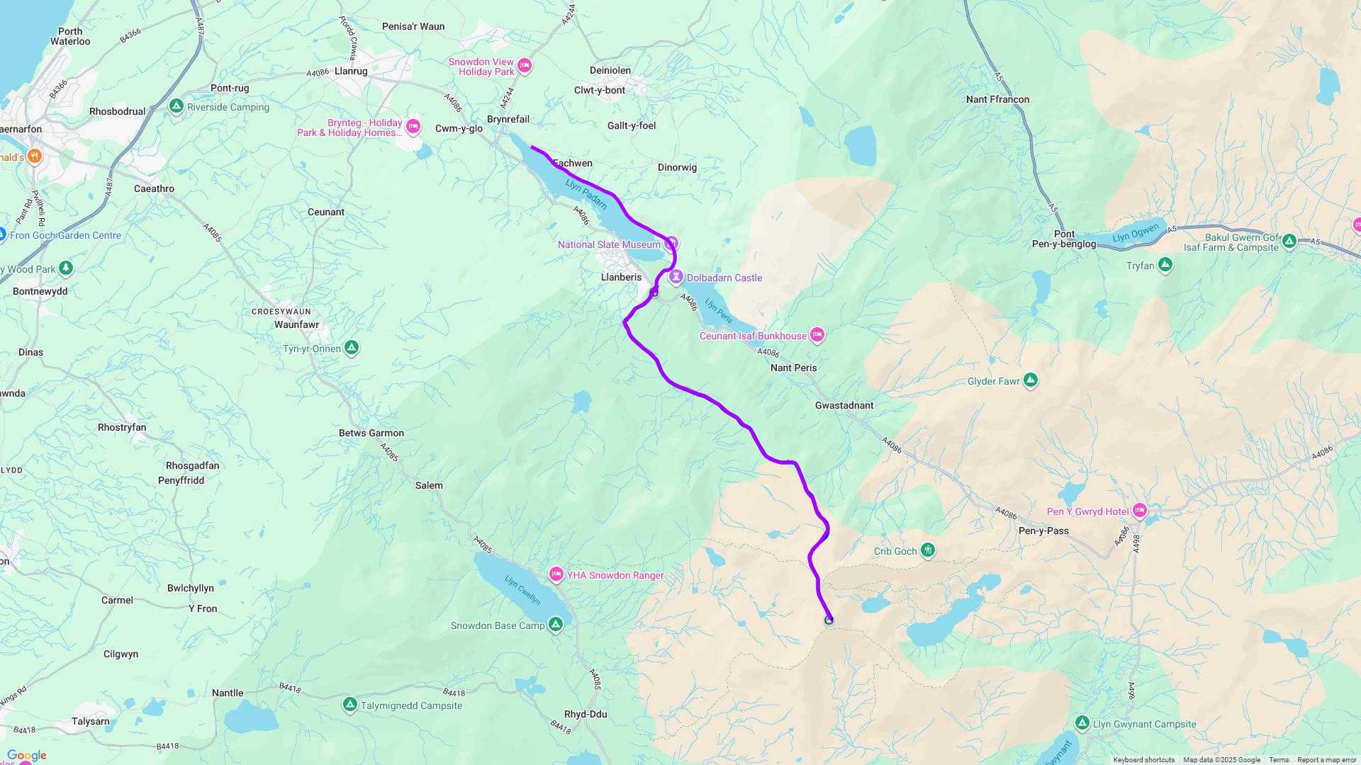 We zijn via de Pen-y-pass gereden naar de cache P-Y-G. Helaas kon ik die niet bereiken met mijn korte broek en de bramen en brandnetels.