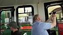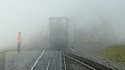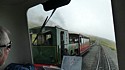 We zijn vroeg opgestaan, aangezien we om 8:15 uur al op het station moeten zijn. We zijn om 7:15 uur vertrokken, en we waren om acht uur op het station van de Snowdon Moutain Railway in Llanberis. We hebben de kaartjes heel erg vroeg gekocht, wat resulteerde dat we nu op rij A zaten, dat was in het hokje van de bijrijder. De trein wordt geduwd en de bijrijder moet opletten wat er voor de trein gebeurt.