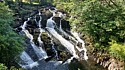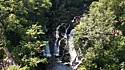 We zijn doorgereden naar de Swallow Falls Waterfall, daar ben ik naar beneden gelopen en Wouter heeft de drone laten vliegen.