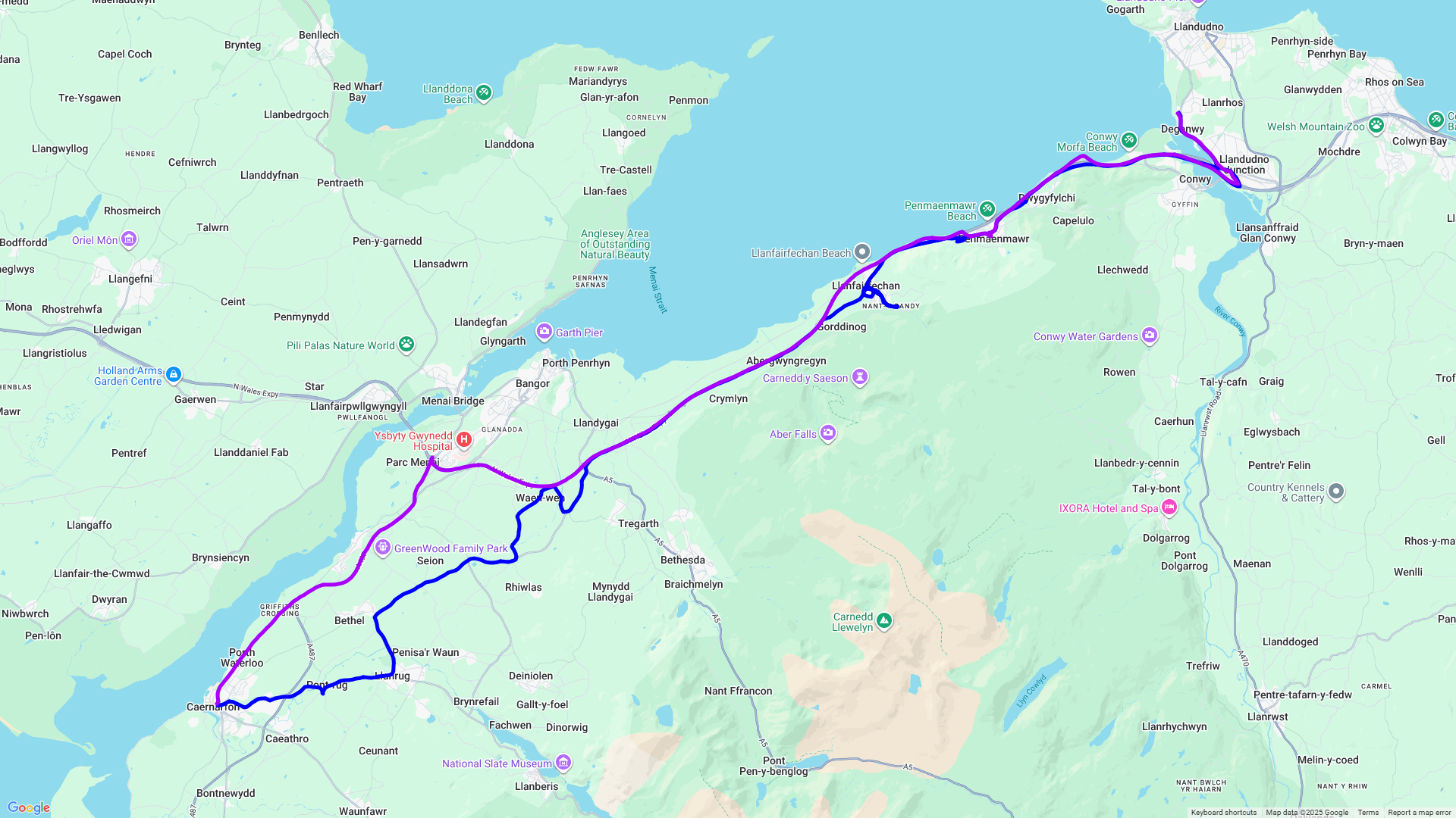De laatste cache You Are Here voordat we bij de trein waren konden we weer niet vinden. We waren om half elf bij het station van Caernarfon, de Gelert Explorer vertrekt om half twaalf dus hebben we eerst nog tijd voor een kopje koffie.