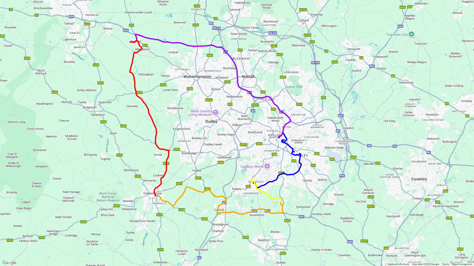 We zijn om half negen begonnen met een rondrit door en om Birmingham. We zijn eerst naar het station van Tyseley gereden, daar ligt een heel groot emplacement bij, helaas stonden er huizen voor of waren de wegen van een hek voorzien en we mochten ook al niet vliegen i.v.m. het vliegveld van Birmingham. Daarna zijn we naar de parkeergarage Snow Hill station gereden, Wouter heeft een afslag gemist wat resulteerde dat we midden door het centrum kwamen. Geen mooi centrum. Nadat we de auto geparkeerd hadden hebben we de kathedraal van Birmingham bekeken en tegen over de kathedraal een kopje koffie gedronken.
