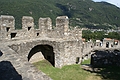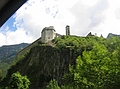 Toen via Lostollo en Soazza naar Mesocco, daar zou een ruďne van een kasteel staan. We hebben hem wel gevonden, maar hij stond boven op en berg en je kon er niet met de auto naar toe. We moesten via een wegomleiding verder, dat was wel leuk je reed pal naast autobaan. Daarna kwamen allemaal haarspeldbochten.