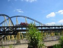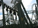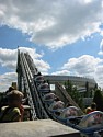 Daarna door naar de Hängeloopingbahn Limit. Daar hang je onder de baan. Het was heerlijk weer. Ook daar heeft hij niet lang hoeven wachten. Als eenling krijg je voorrang. Je mag niet groter zijn als 1.95 meter. Gelukkig paste het.