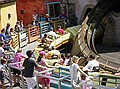 We wilden om acht uur opstaan, maar om zeven uur waren we wakker. Dit keer niet door onze persoonlijke wekker, die lag nog lekker te slapen. Na een heerlijk ontbijt buiten zijn we om kwart voor negen op pad gegaan. We moesten wel de ongelofelijke afstand van 6 km rijden naar het Hansapark. We waren dus mooi op tijd in het park. We hebben de eerst de attracties gedaan waar we lange wachtrijen verwachten. Maar zoals we jaren geleden in de Efteling al ontdekten: Met een hittegolf is het niet druk in een pretpark, dan kan je overal bijna zo doorlopen. Eerst is Wouter in de vlucht of Novtorov geweest, voor dat ik goed en wel op de plek stond om te filmen, kwam hij al “overgevlogen”. Daarna zij Jozef en Wouter in de boomstammen wildwaterbaan geweest. Jozef vond het geweldig. Toen gauw naar Nessie, net zo’n soort achtbaan als in Slagharen. Jozef en ik zijn in de razende Rolland geweest, als je denkt dat het niet hard gaat heb je het mis. Ik had me er een beetje op verkeken. Maar wel leuk we kwamen elkaar in de lucht tegen. Jozef vond het geweldig. Daarna hebben we gekeken welke shows we wilden zien. Om elf uur was er een zeeleeuwen show. Als je Jozef vraagt wat hij het mooiste van de dag vond krijg je als antwoord de walvissen. Walvissen? Je weet wel die met bal gooiden en die de jongen had gevangen (en niet Jozef). Dan begrijp je dat het over de zeeleeuwen gaat. Maar ook de glijbaan waar je met een band af ging was zeer leuk. Zelfs zo leuk dat we er twee keer achter elkaar in geweest zijn. Met zijn drieën, want mama vond dit ook leuk. En je werd eigenlijk helemaal niet nat. Na de parade zijn Jozef en Wouter nog in de boomstammen geweest om af te koelen. Eigenlijk wilde ik nog wel zwemmen, maar bij 33 graden zag Wouter dat niet zitten. Ik kan hem daar ook wel gelijk ingeven, want we hebben geen parasol. We hebben in het hotel gegeten.