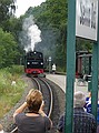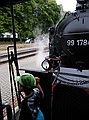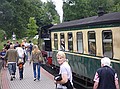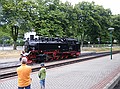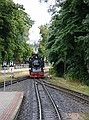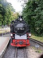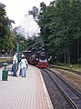 Het had vannacht geregend, dus was het lekker afgekoeld tot 17 graden. We hebben zelfs een lange broek aan getrokken. We konden vanaf acht uur ontbijten, we waren er wat te vroeg, maar dat was geen probleem. Om 9:44 uur vertrok “Razende Roland” vanaf Binz LB, dus wij daar naar toe. We waren er al om negen uur. We zijn helemaal tot Göhren gereden. Maar wat er zo razend aan Roland is dat vragen we ons nog af. Wat reed die trein traag. Op het station van Goren heeft Wouter twee ijsjes en wat te drinken gekocht. Om 10:48 ging de trein weer terug.
