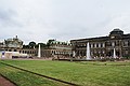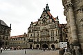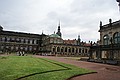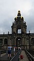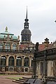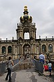 We hebben weer de trein van 8:53 uur naar Dresden genomen. We zijn in Dresden Mitte uitgestapt. En met de tram naar Potzplatz. Daar hebben we eerst een kop koffie gedronken. We hadden al uitzicht op de Zwinger, de achterkant bleek later.