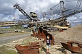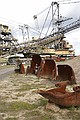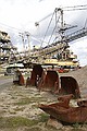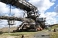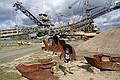 Om tien uur waren in het Bergbau technik park. Hier lieten ze zien hoe bruinkool gewonnen werd. Erg indrukwekkend, we waren bijna rond en toen kwam er een meneer aan die vroeg of we nog vragen hadden. En kregen vervolgens een rondleiding van een half uur. Maar onvoorstelbaar wat voor getallen hij noemde, zoveel aarde dat verplaatst is. En als je dan om je heen kijkt zie je dit heel duidelijk in het landschap. Wij dachten dat het meters gezakt was, maar dat is maar een paar meter. Maar de grond is wel onvruchtbaar geworden. Hele dorpen en spoorlijn en de B95 zijn verdwenen. Ze hebben nog bruinkool dat ze door kunnen tot 2030. Maar de centrale is gesloten in 1996.