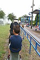 Daarna zijn we door gereden naar Modelbaupark Auenhain in Markkleeberg. Het was bijna twaalf uur dus hebben we eerst gegeten. Een pannenkoek. Daarna zijn we het park in gegaan en we hebben een rondje met het stoomtreintje gereden. Het was een beetje klein en oud.