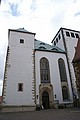 De weersverwachting voor vandag was 18-22 graden, tja wat trek je aan? Wouter besloot een korte broek. Ach ja waarom ook niet, het is vakantie. Ik heb toch maar een vest en een ¾ broek meegenomen. We zijn begonnen in Freiberg, we wilde de dom bekijken. Helaas kon Wouter de auto niet op het domplein parkeren, het was één richtingsverkeer. Maar ver stonden we er niet vandaan.