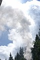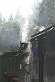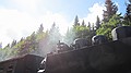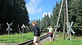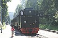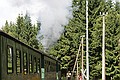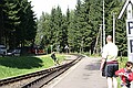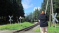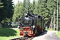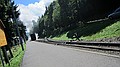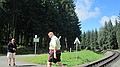 Ergens midden in het bos een station. Konden we mooi beide treinen zien vertrekken. Via een illegale weg verder, maar gauw weer op de gewone weg naar Rittersgrün. We kwamen via de Fichtelberg, erg mooi gebied.