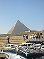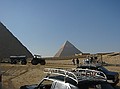 We reden met het busje om de piramides heen en reden naar de derde piramide, de piramide van Mycerinus, daar had je mooi uitzicht op een stuk Sahara. Daarna hebben we de middelste piramide (de piramide van Chefren) aan de binnenkant bekeken, helaas waren er geen schilderingen op de muur.