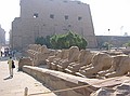 We begonnen bij rij van sfinxen (rammen) (de tempel van Amon).