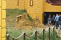 Om elf uur waren we klaar, toen we bij de auto kwamen begon het te spetteren. We hebben ons tien uurtje opgegeten en gedronken en zijn op zoek gegaan naar een supermarkt. De bitter lemon die we gisten hadden gekocht vond Wouter absoluut niet lekker. Ook zijn we een bouwmarkt doorgelopen in de hoop een goede goedkope stoel konden kopen. Helaas. We zijn via de kust naar Blankenberge gereden. De auto alvast bij Sealife geparkeerd, aangezien het weer nog al dreigend was. We zijn even naar de zandsculpturen gelopen, maar om nu €30 te betalen om een zandkasteel te bekijken, dat ging me te ver.