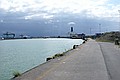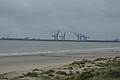 We zijn even over de duin heen gelopen en hebben de zee en de havenmond van Oostende bekeken.