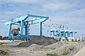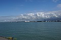 We zijn naar het strand gelopen, of eigenlijk geklommen, en hebben op een bankje met uitzicht op het strand en op Zeebrugge, onze lunch opgegeten en gedronken.