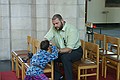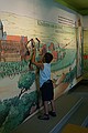 Toen zijn we via de oever van de Lovaart naar Veure gereden. We konden niet helemaal de goede weg vinden, uiteindelijk zijn we over de N8 naar Koksijde gereden. We wilden het abdijmuseum bekijken, maar we konden hem niet vinden: Geen bordjes, niet op de kaart. Dan ben je blij met een tomtom, maar die kon ook in eerste instantie de straat niet vinden, maar gelukkig het museum wel. Voor het museum hebben we onze lunch opgegeten. Daarna hebben we het museum bekeken. Binnen was het erg mooi, met allerlei knopjes waar Jozef op kon drukken.