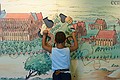 Eerst hebben we de St Nikolaaskerk bekeken. Het duurde even voordat we door hadden dat de hele kerk na WO I geheel opnieuw is opgebouwd. Dat hebben ze mooi gedaan. Jozef was helemaal onder de indruk van St Joris en de draak, helaas is de foto mislukt.