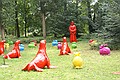 Buiten vonden we wat minder, ze hadden moderne kunst staan waar je niet aanmocht komen. En je mocht op de ruïne niet op de stenen lopen, maar je kon het daardoor niet goed zien. En ze waren op de helft maar gestopt met restaureren.