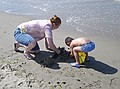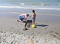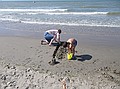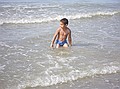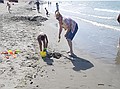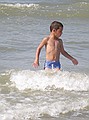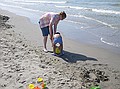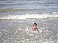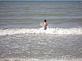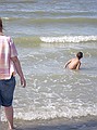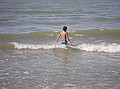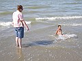 Gezien de tijd zijn we maar naar Middelkerke-bad gereden, daar heeft Jozef gezwommen. Hij wilde zo graag zwemen en met deze temperaturen en lekkere zon kon het wel. Ik vond het water nog wat te koud, dus heb ik me vermaakt met pootje baden en zandkasteel bouwen (onderleiding van Wouter) samen met Jozef.