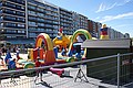 We hadden bedacht om vandaag rustig aan te doen, vanochtend naar Nieuwpoort-bad naar de Sint Bernardsfeesten en vanmiddag de koffer inpakken. Het liep toch even anders. We hebben vanochtend na het ontbijt twee koffers ingepakt en toen zag Jozef “die meneer” lopen. Of hij wel naar buiten mocht op zijn skelter. “Tuurlijk”. Volgens mij is hij nooit aan het fietsen op de skelter toe gekomen, want hij ging kijken bij die meneer. En nadat de koffers waren ingepakt, is Wouter ook maar eens gaan kijken. Jozef was al hard aan het werk gezet. Hij moest konijnen, schapen, kippen, katten eten geven en van schoon hooi voorzien. Hij vond het geweldig. Ik ben ook maar even wezen kijken, maar het gras was nog erg nat, dus ik maar weer naar binnen. Om kwart over tien waren ze klaar, toen was het tijd voor koffie. Dus uit eindelijk om elf uur naar de feesten. We konden gelukkig de auto vrij gemakkelijk kwijt. We zijn de hele braderie over gelopen. Er waren ook standwerkers, we zijn er in getuind…. Mijn ramentrekker is stuk, dus maar een nieuwe gekocht. Voor Jozef nog 3 boeken gekocht. Jozef heeft nog even op het springkussen gesprongen. Als afsluiting nog wat gedronken op een terras. Het was half twee en om half drie was er een dansvoorstelling, die we eigenlijk allebei wilde zien. Dus ik de tassen naar de auto gebracht, Wouter en Jozef naar de springkussens en wij samen om 14:15 uur naar het podium. Daar hebben we de dansvoorstelling gezien… helemaal….. We dachten het duurt even, maar het was een voorstelling van een uur. Jozef was het staan op den duur wel zat, wij eigenlijk ook, maar we zijn blijven kijken. Als beloning voor het goede gedrag wilde we een ijsje kopen. Maar dacht je dat we een ijswinkel konden vinden. Ja uit eindelijk, Wouter en Jozef een ijsje. Ik stond buiten te wachten, toen viel mijn oog op een menukaart. Een portie mosselen (kleintje), dus ik heb een portie mosselen besteld. Maar dat duurde even voordat het klaar was. Dat was erg lekker, zo lekker dat Wouter zei moet je nog één? Daar kon ik natuurlijk geen nee opzeggen. Jozef had zijn ijsje op en wilde ook wel proeven. Tja, toen moest ik mijn portie delen. Uit eindelijk waren we om vier uur bij de auto. Hoezo op tijd naar huis… We zijn langs de supermarkt reden, Jozef kreeg een smurf. Jozef wilde nog wel weer kijken bisj die meneer, maar de was er niet.
