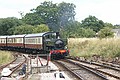 Na een zeer onrustige nacht, ons bed was te klein, werd ik al vroeg wakker van Jozef. We hadden gisteren een welkomstpakket gekregen. Daar hebben we van ontbeten. We wilden eerst naar de supermarkt en dan even terug en dan op pad. Maar de supermarkt was pas om tien uur open, dus we zijn meteen gestart. We zijn via de A379 langs de kust gereden tot aan Paignton en dan zijn we naar Totnes gereden. We waren op 10:48 uur op de parkeerplaats van de South Devon Railway.