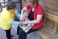 Daarna hebben we bij de kinderboerderij gegeten: met zijn drieën 1 soep met brood, 1 sandwiches met ham, 1 salade. Zeer gevarieerd en genoeg en niet te veel. Daarna zijn we de kinderboerderij in gegaan. Erg leuk, je kreeg ieder een bekertje voer. Maar helaas zijn we de tijd vergeten en waren we te laat terug bij de auto.