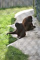 We hebben beter geslapen als de eerste nacht, maar kon nog beter. Wouter is vanochtend brood gaan kopen in de supermarkt. We zijn om 9:15 uur vertrokken naar Monkey World. Dat is 100 km rijden. Volgens de tomtom zouden we er om 10:30 uur zijn, maar de Engelsen hebben rare ideeën over snelheden, wegen zonder vluchtstrook en aardig smal mag je 97 km/u dat haal je dus nooit. Ook stuurde de tomtom ons over witte wegen, dat was wel leuk zo kwamen we langs een militair oefenterrein en we moesten even wachten voor een rijdende tank. Om 11:05 waren we op plek van bestemming. We hebben het hele park bekeken, het is wel raar dat je de apen die je op de televisie hebt gezien nu in het echt ziet. Net alsof je filmsterren ontmoet. Om 14:30 uur zijn we terug gegaan, ook nu deden we er langer over dan gepland, maar dit scheelde maar 15 minuten. Nog even boodschappen gedaan.