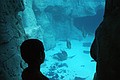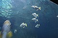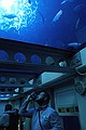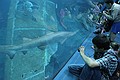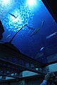 Het National Marine Aquarium was vlak bij. We moesten de brug over en dan waren we er, we moesten even voor de brug wachten, er wilde een boot langs. We moesten even wachten voordat we het aquarium in konden, er waren meer mensen die met dit slechte weer vermaak onderdacht zochten. Het was een erg mooi aquarium, op sommige punten liep je onder de vissen door. Het was alleen jammer dat Jozef had besloten om met de kont dwars te zetten. Na een goed gesprek zijn we richting de auto gelopen, daar hebben we onze lunch opgegeten.