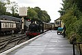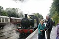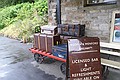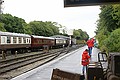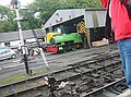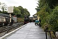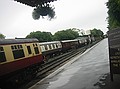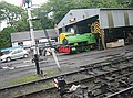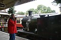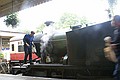 We hadden bij Bodmin even moeite om het treinstation te vinden, toen we aankwamen was de trein net 10 minuten weg. Als alternatief mochten we de loods met treinen bekeken. Om 15:40 uur kwam de stoomtrein weer terug. We hebben een kop koffie gedronken.